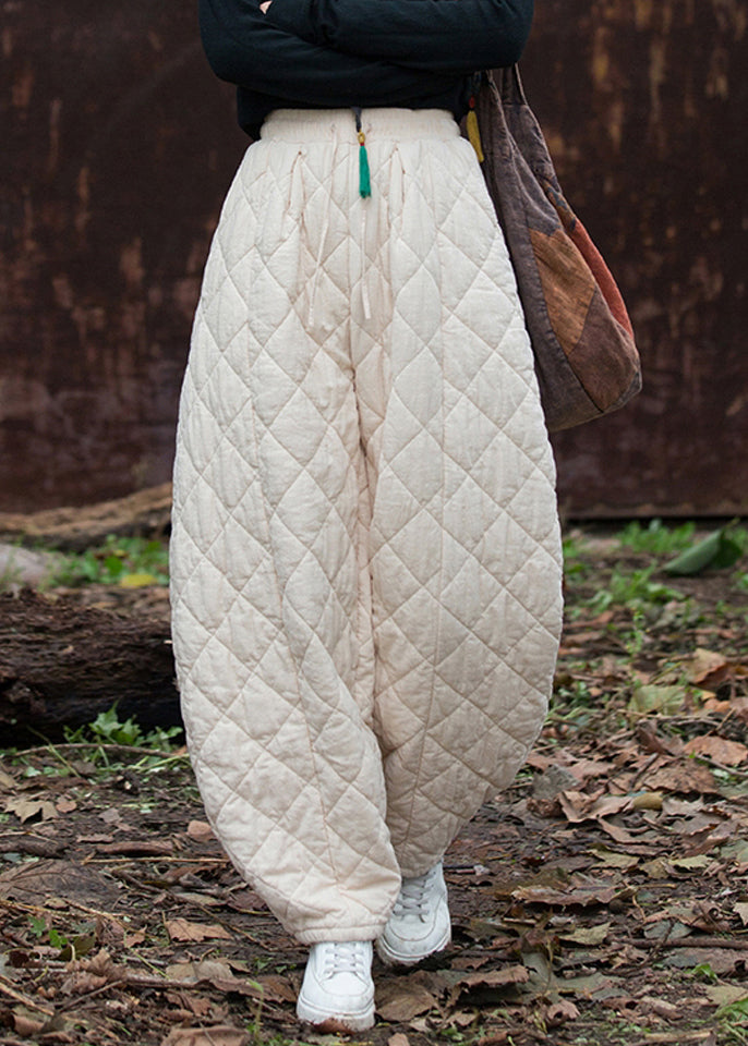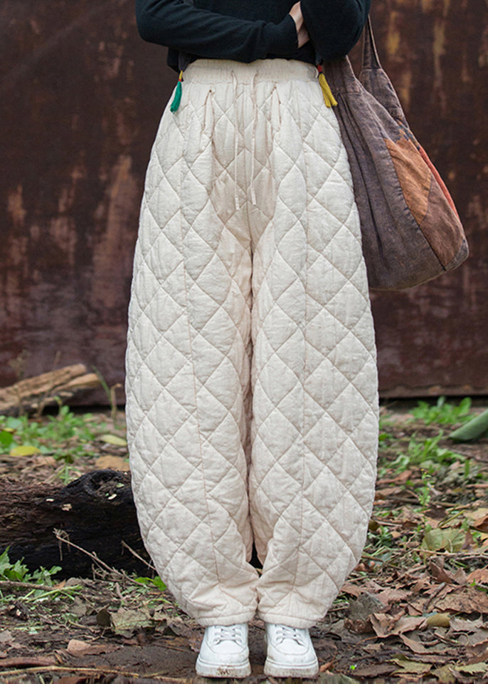 Pantalones beige con diseño original, bolsillos, relleno de algodón liso, cintura elástica
