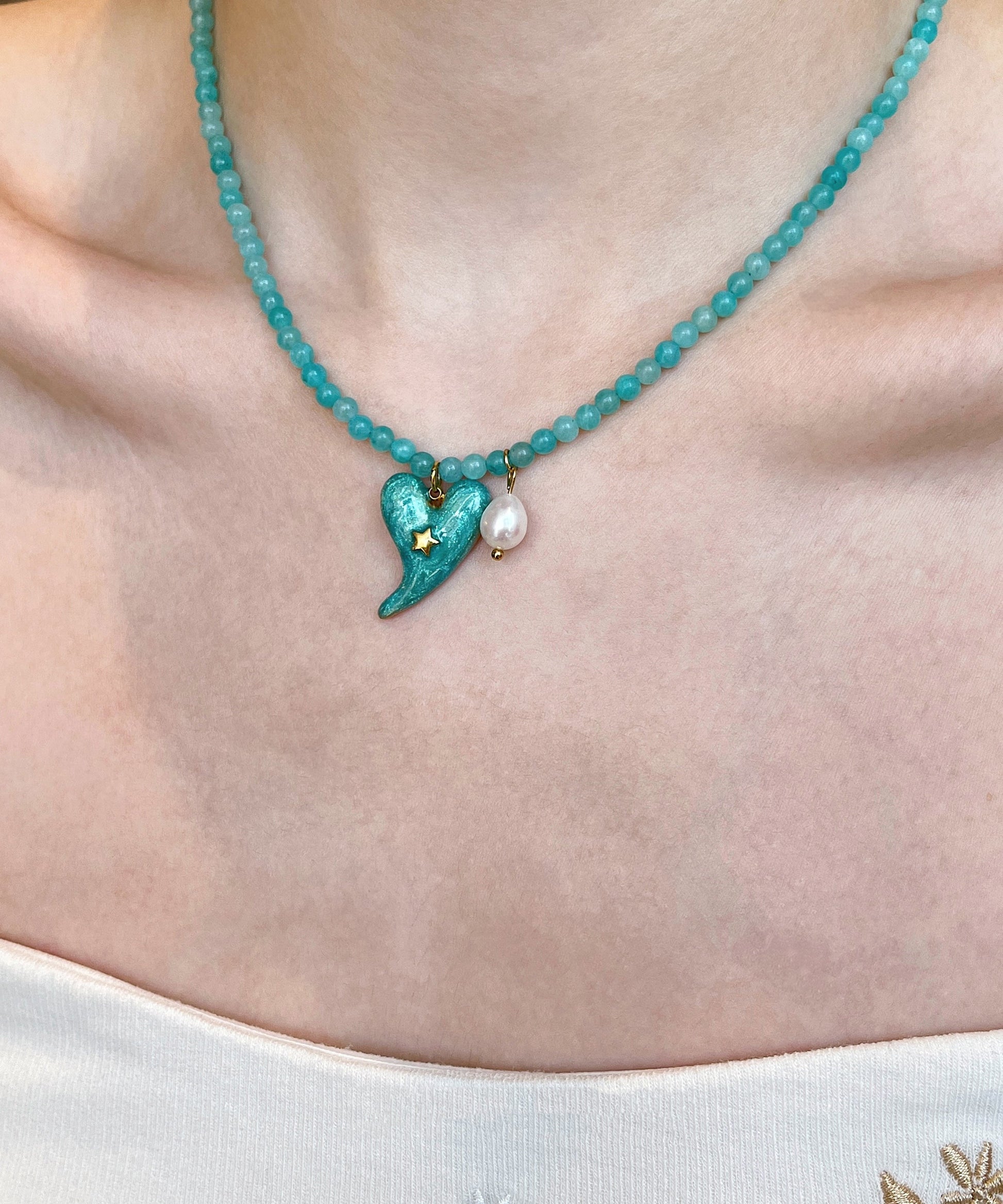 Bohemian Blue Alloy Floral Love Pearl Cat's Eye Stone Beading Pendant Necklace Two-piece set