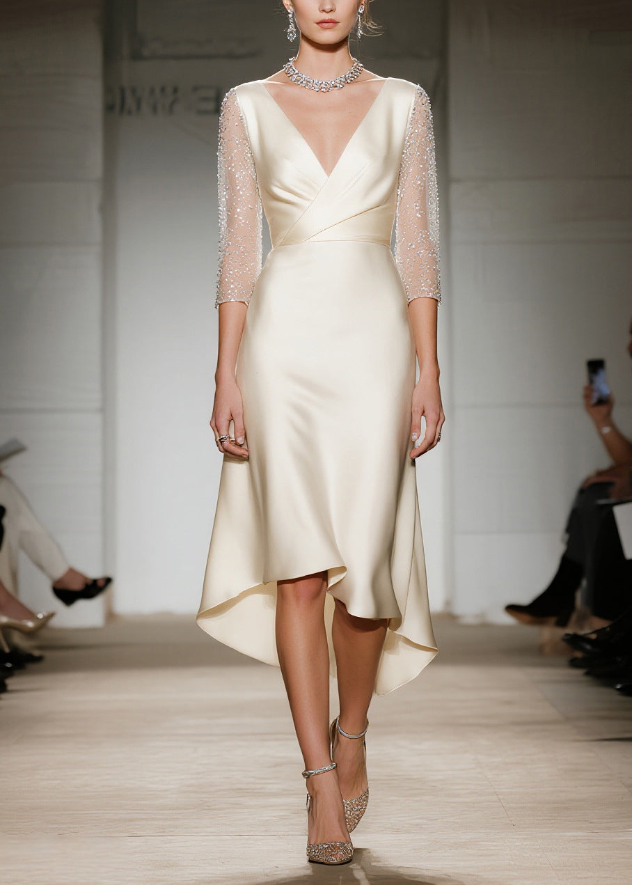 Bohemian Champagne V Neck Patchwork Silk Dresses Summer