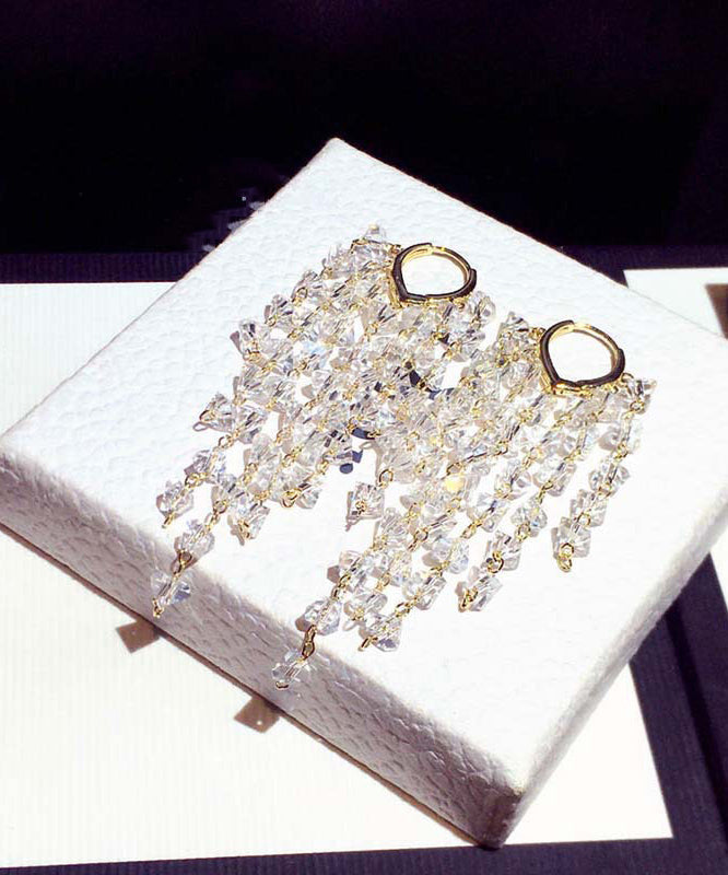 Pendientes bohemios con borlas de amor y cristales dorados en plata de ley negra