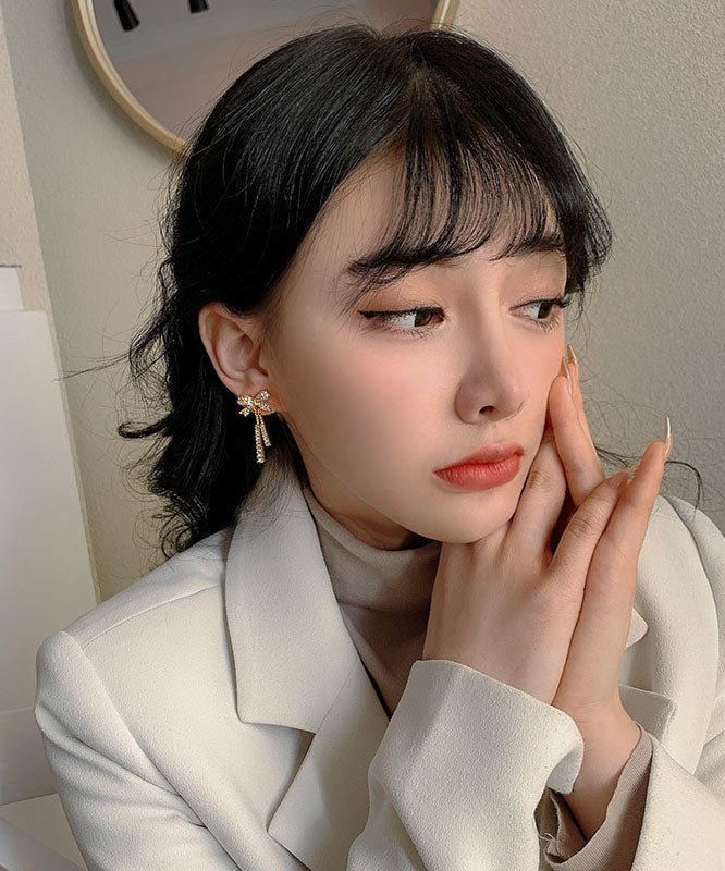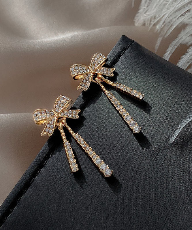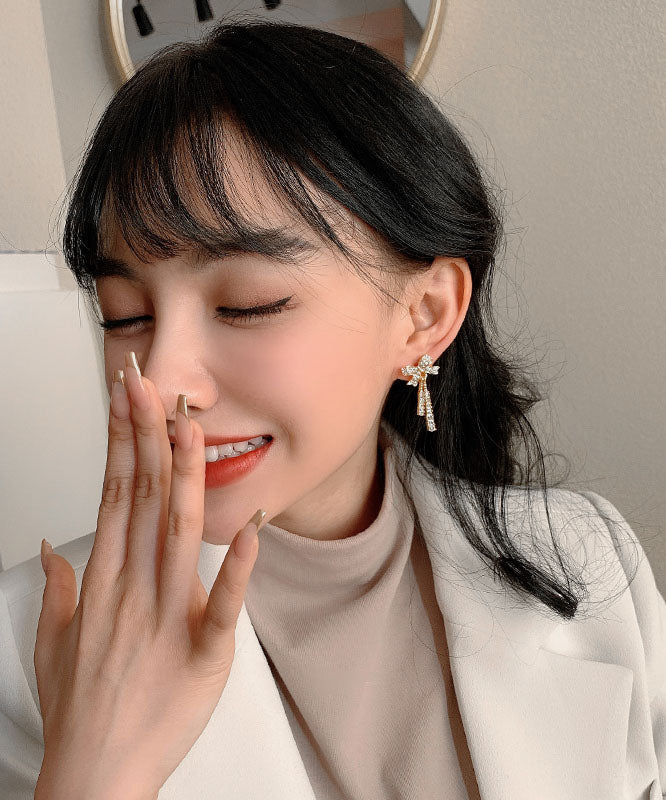 Pendientes bohemios con borlas de lazo de circonita y aleación de plata esterlina y oro