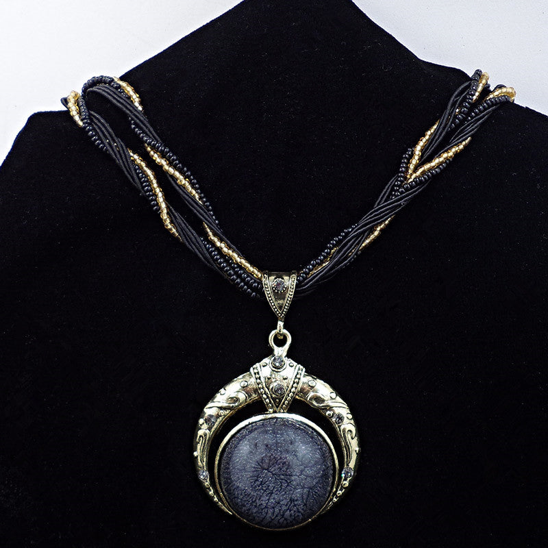 Collar bohemio con colgante de bola de arroz y gema azul claro