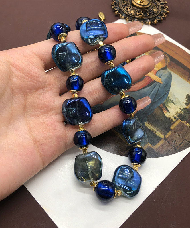 Collar con medallón bohemio de plata de ley azul real con esmalte dorado antiguo