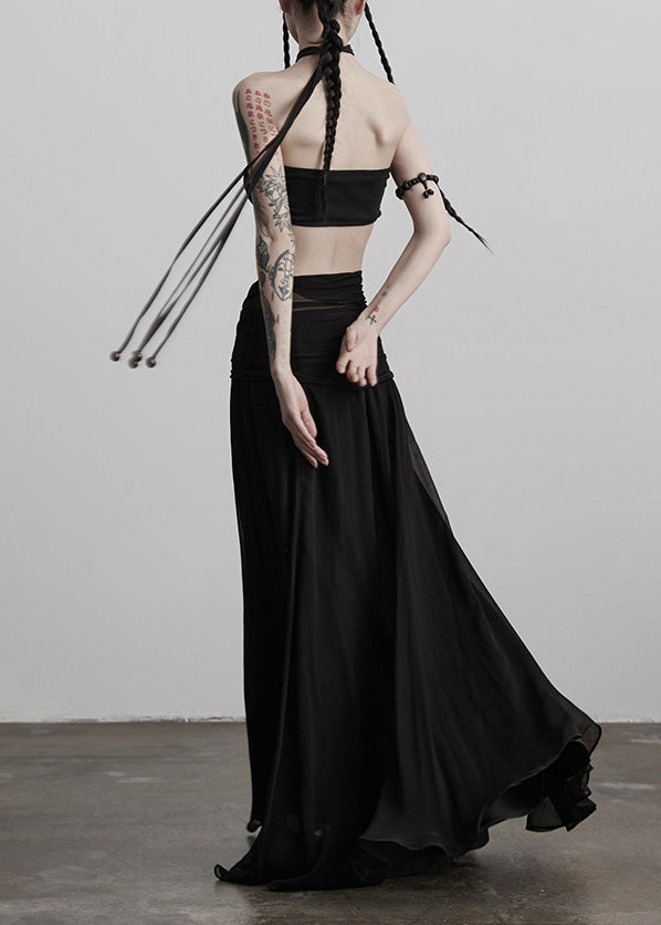Faldas de seda con dobladillo extragrande y patchwork con borlas negras de boutique para primavera