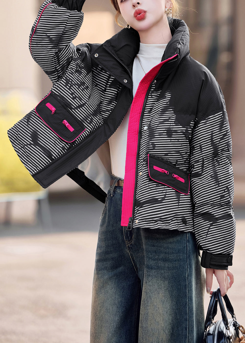 Chaqueta de plumón de pato a rayas con cremallera negra de Boutique para invierno
