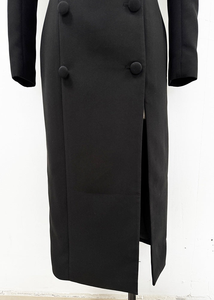 Vestido Boutique Rojo con Cuello Barco, Doble Botonadura, Abertura Lateral, Primavera
