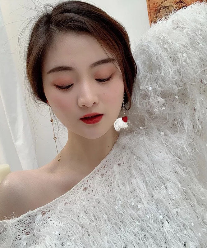 Pendientes colgantes con borlas de amor asimétricas Prarl de plata esterlina roja dorada de boutique