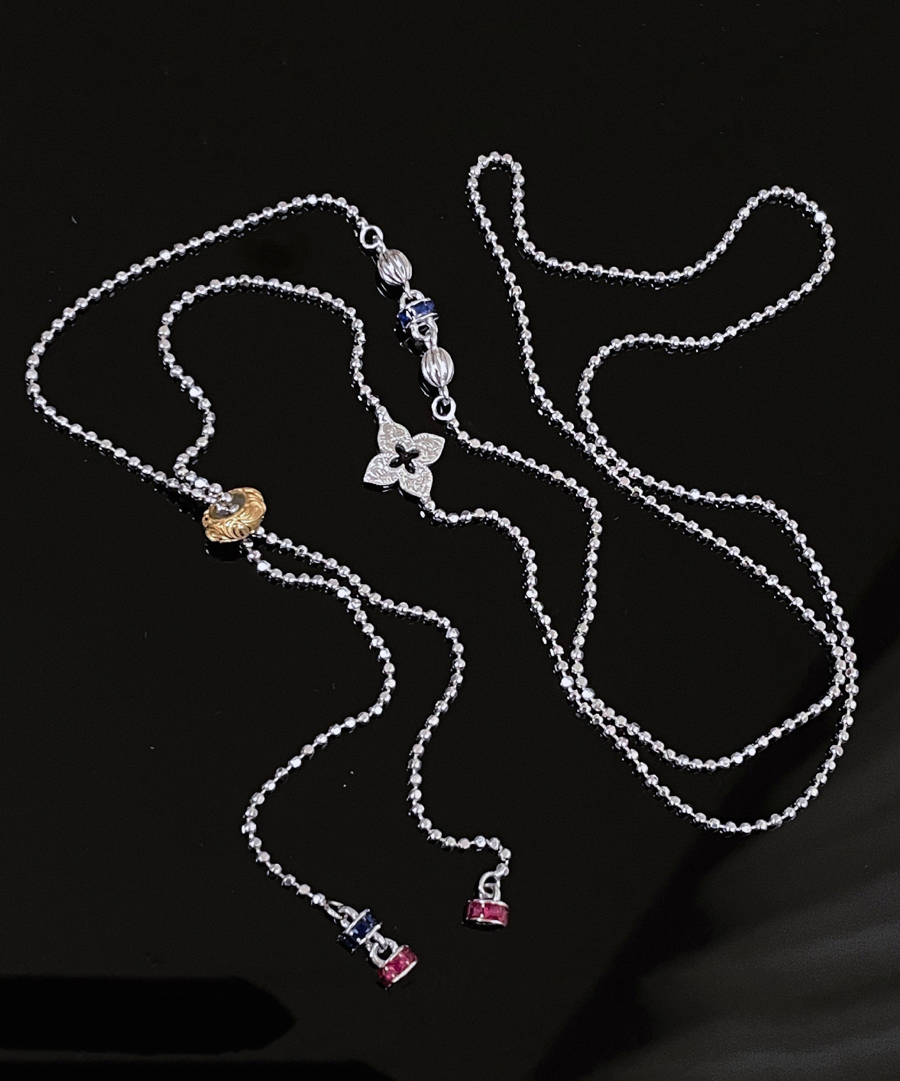 Collar con colgante de borla de trébol de cuatro hojas con circonitas de cobre y seda de boutique