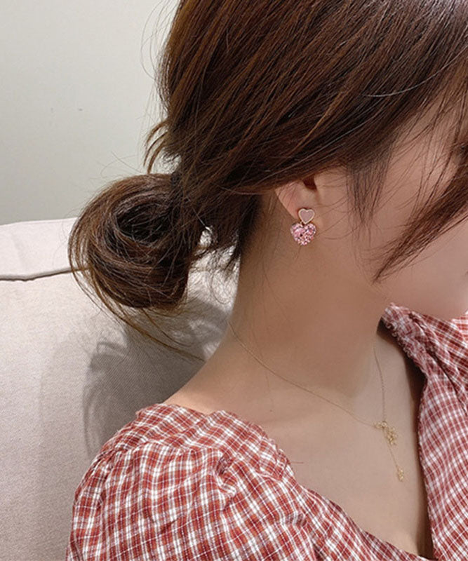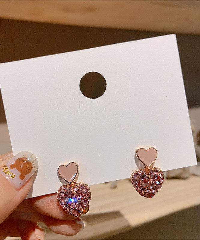 Pendientes casuales de aleación rosa con incrustaciones de gemas y circonitas