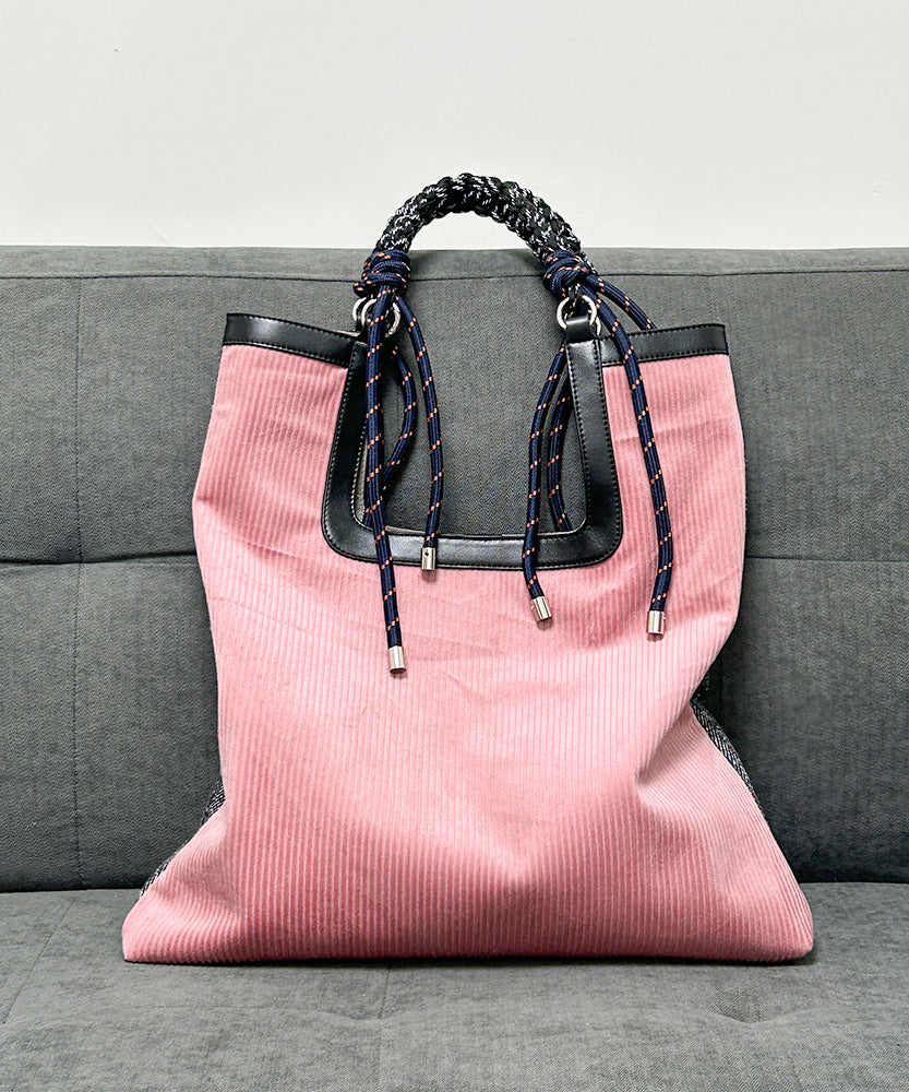 Bolso de hombro informal de pana amarillo de gran capacidad
