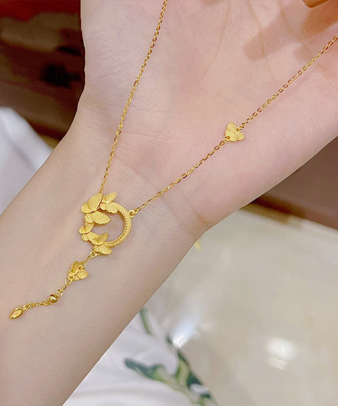 Elegante collar con colgante de mariposa y borla de acero inoxidable dorado