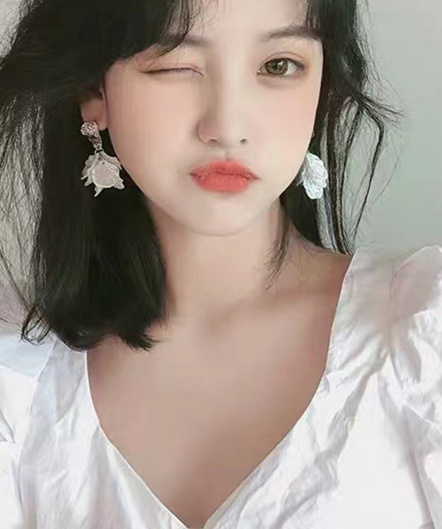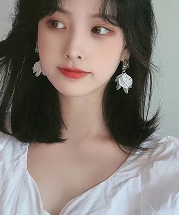 Elegantes pendientes colgantes florales de plata de ley blanca