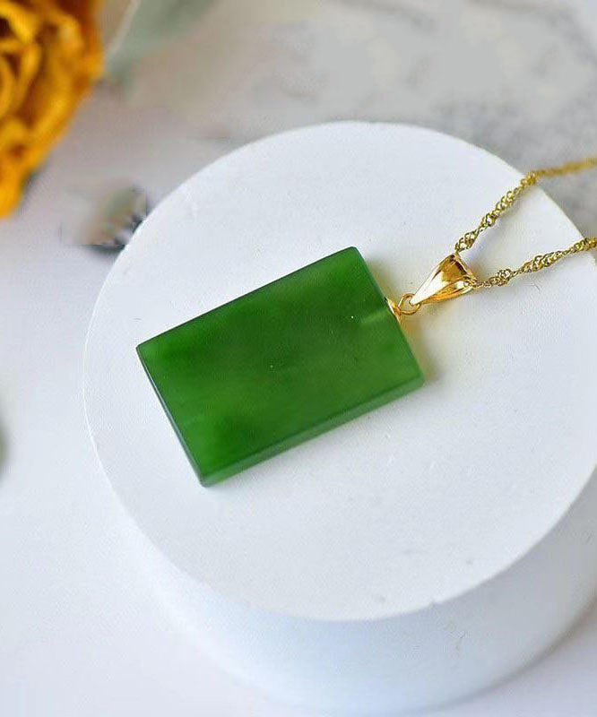 Elegante collar con colgante rectangular de jade en plata de ley verde