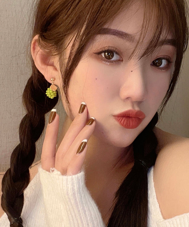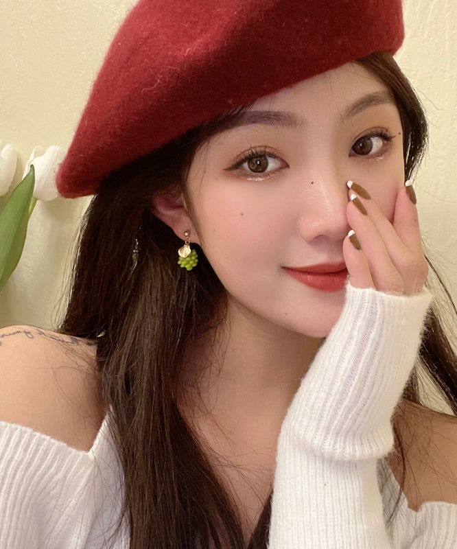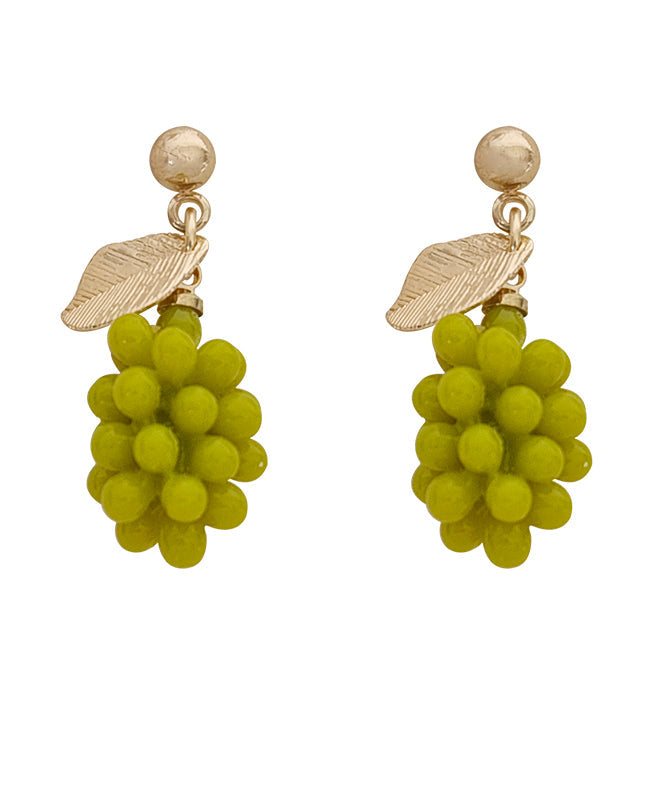 Pendientes colgantes de uva con resina metálica de plata de ley verde elegante
