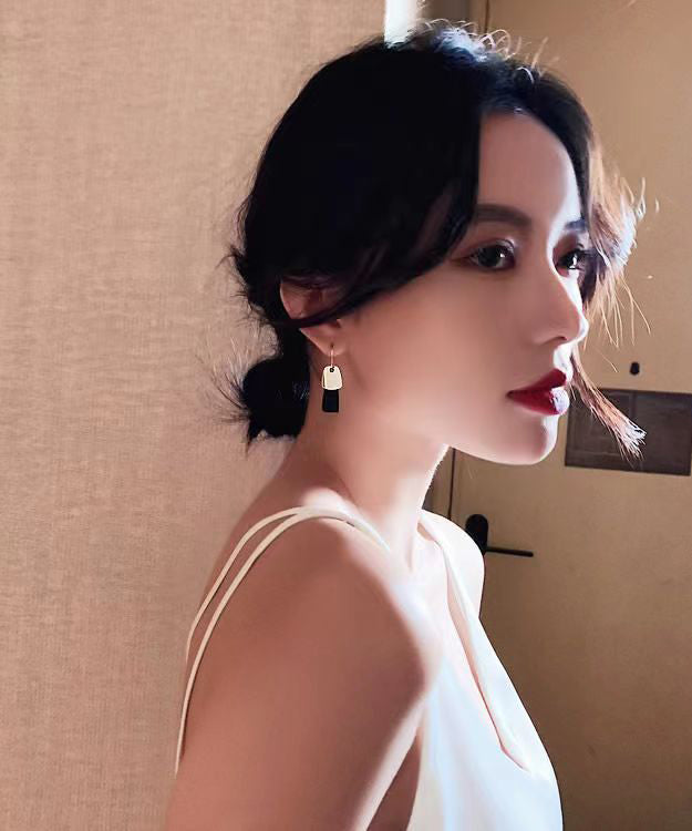 Pendientes colgantes elegantes de plata de ley con acabado de pintura metálica de color naranja