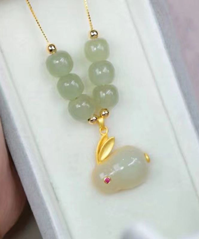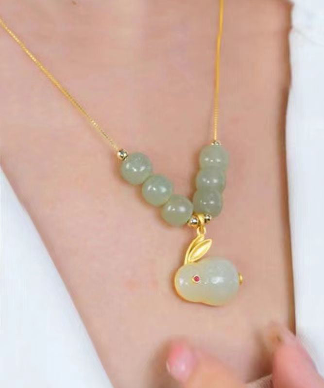 Elegante collar con colgante de ágata de jade y plata de ley roja dorada