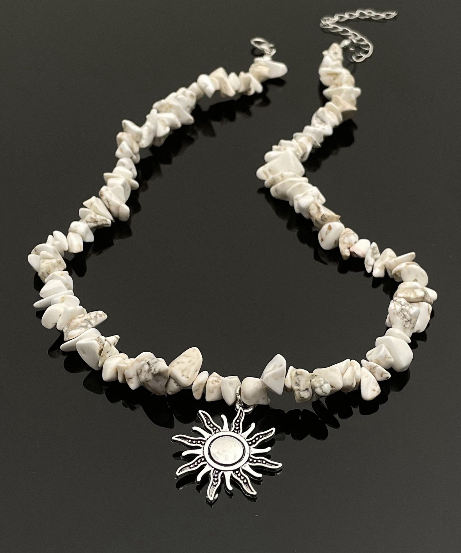 Elegante collar de lazo solar con piedra natural de aleación blanca