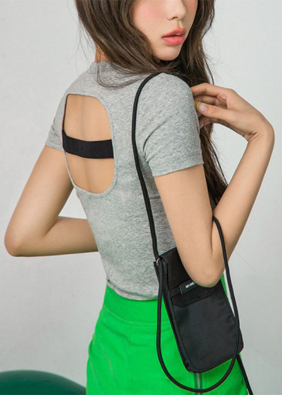 Bonita camiseta de manga corta con estampado de patchwork rosa y hueco
