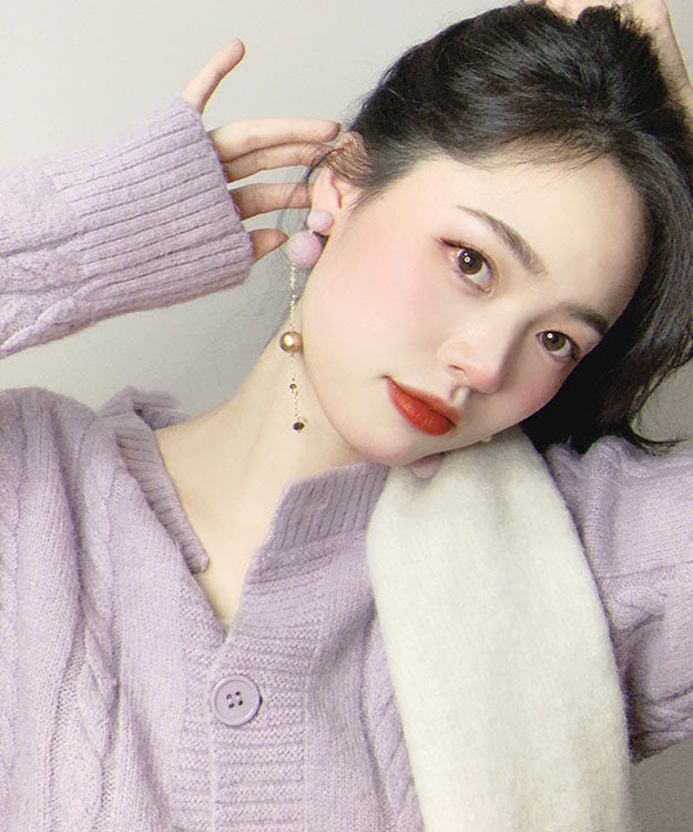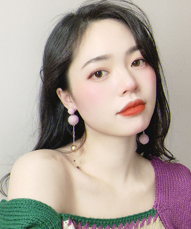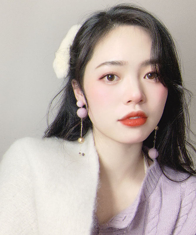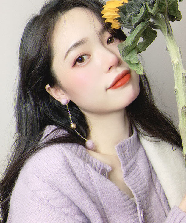 Lindos aretes colgantes de bola peluda de cristal dorado en plata esterlina morada