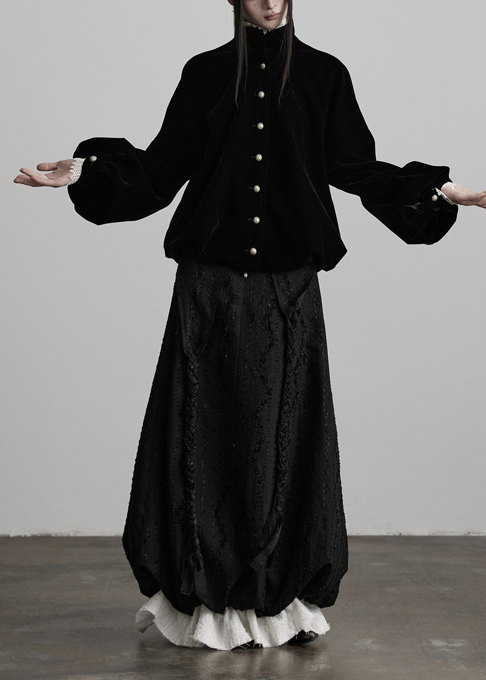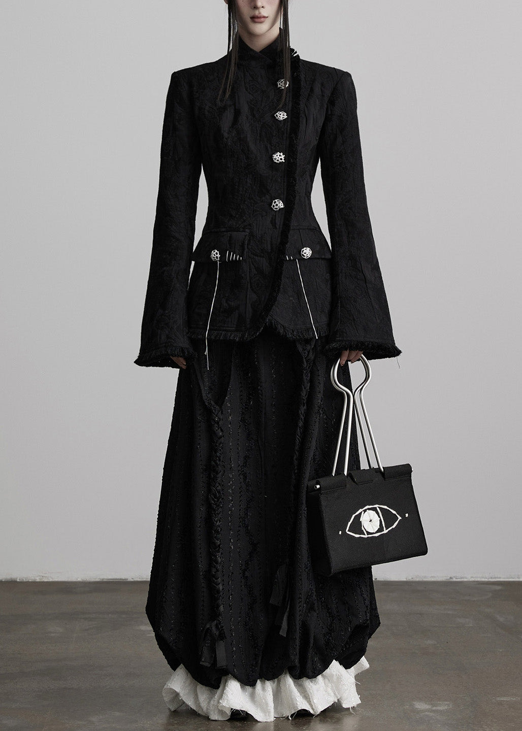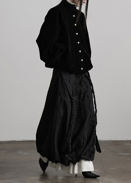 DIY Black Weave Patchwork Cotton Skirt Spring