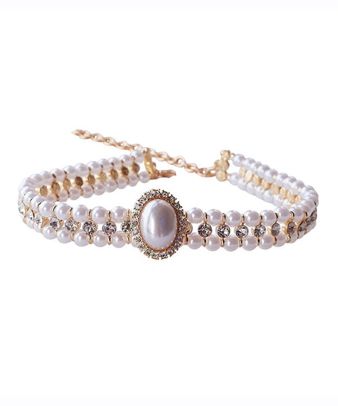 Collar de princesa de circonita y perla con incrustaciones de aleación de oro DIY
