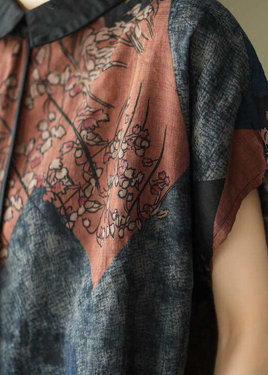 Blusa de lino con cuello Peter Pan y estampado de manga corta