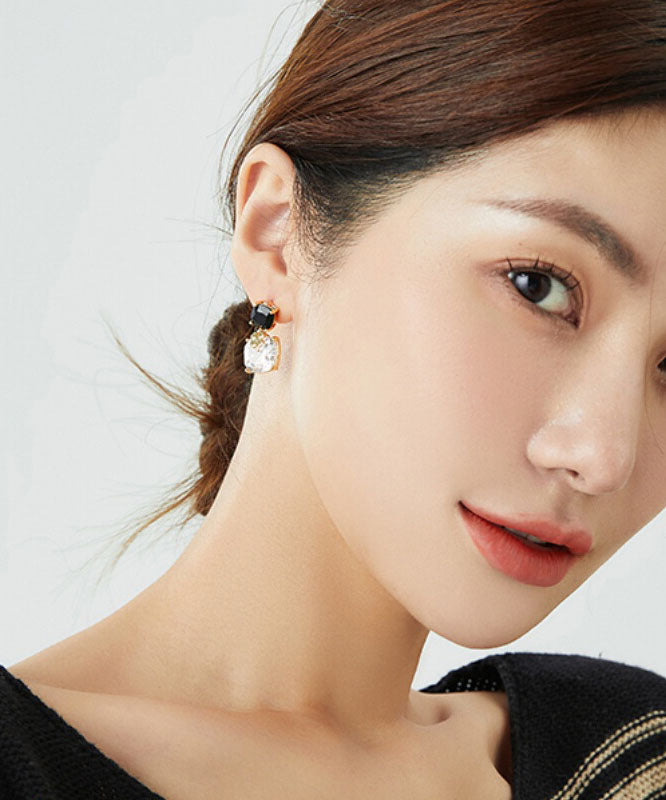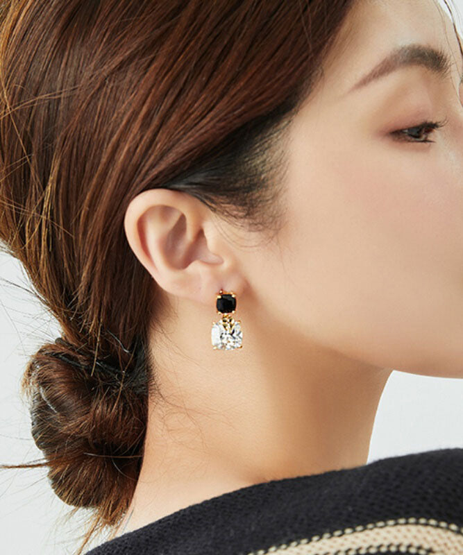 Elegantes pendientes asimétricos de plata de ley negra con cristales de circonita
