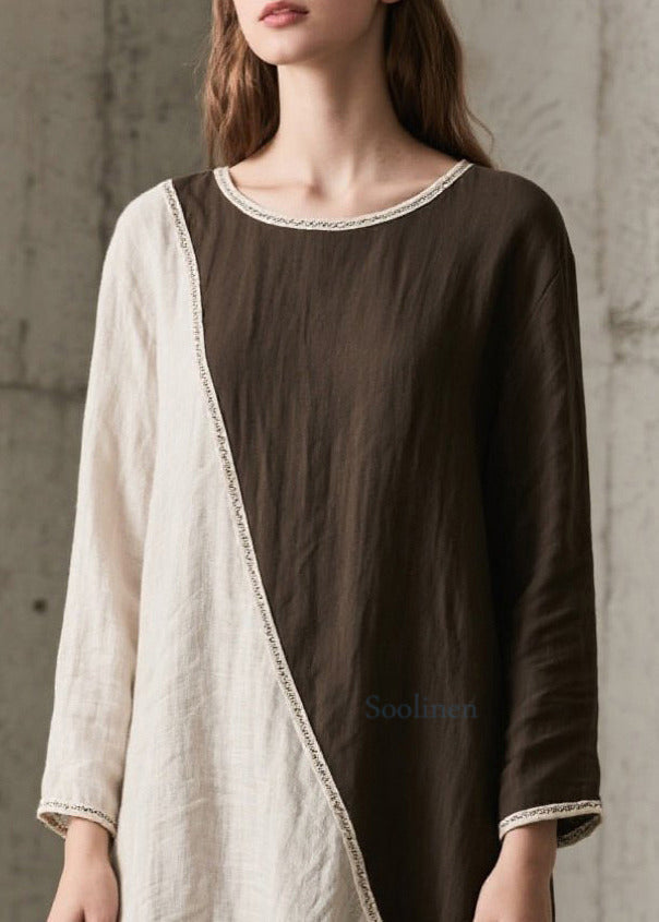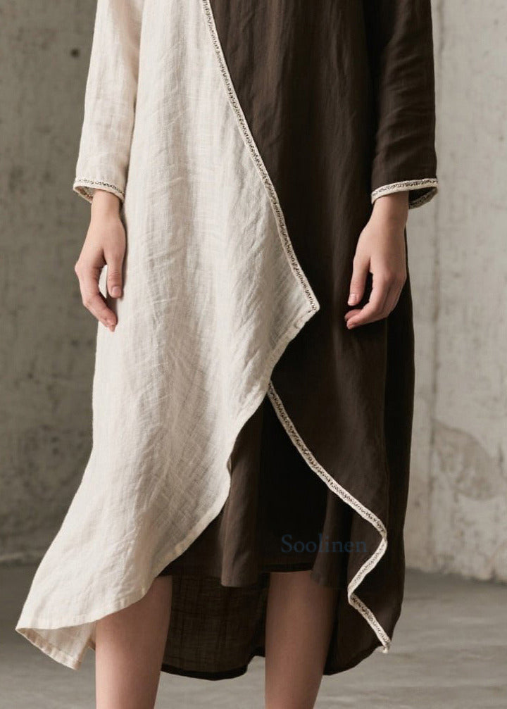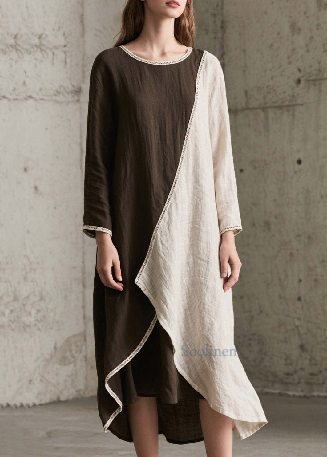 Elegantes vestidos largos asimétricos de algodón de gran tamaño con bloques de color para primavera
