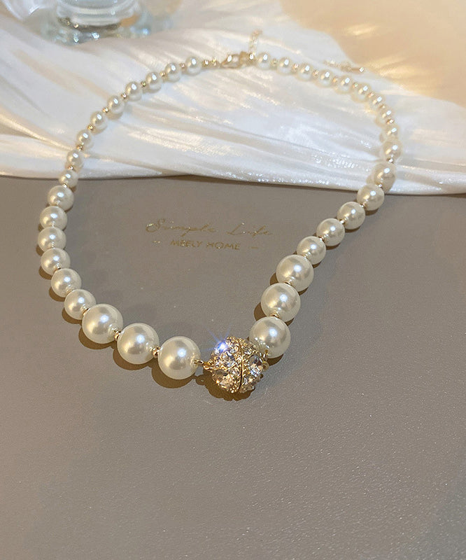 Elegante collar de perlas de cobre blanco y circonitas