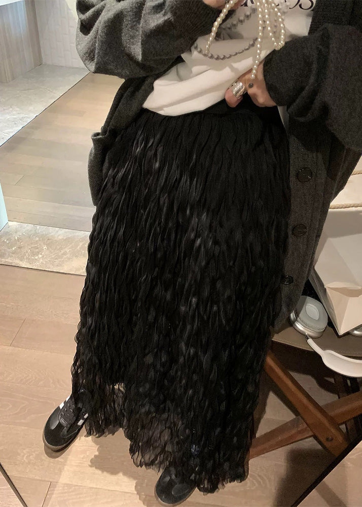 Falda elegante de tul blanco arrugado con cintura elástica sólida para primavera