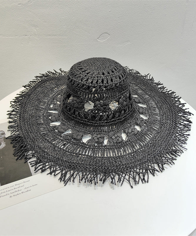 European And American Style Camel Hollowed Out Straw Woven Sun Hat Large Eaves