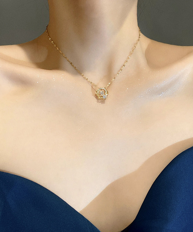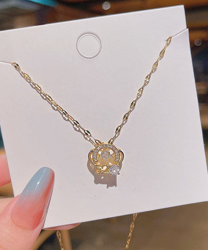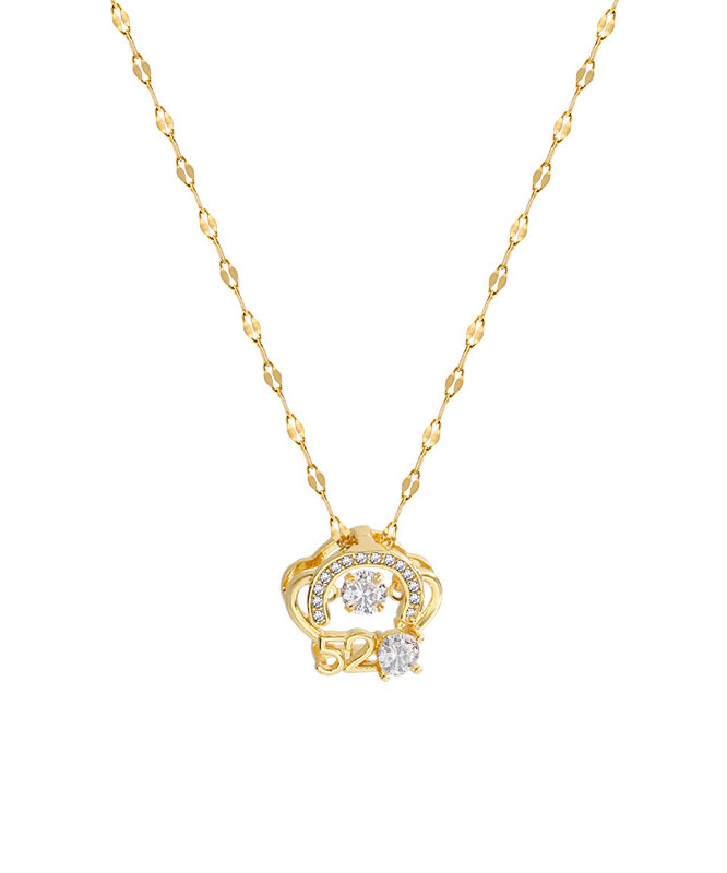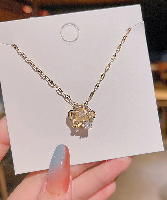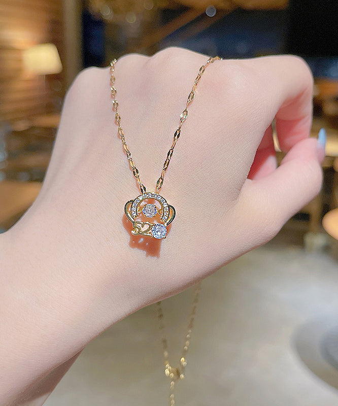 Collar con colgante de corona de circonitas doradas de acero inoxidable de moda