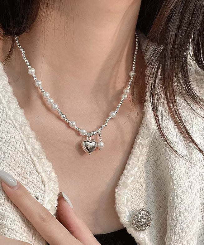 Collar con colgante de amor de acero inoxidable dorado y perla de moda con patchwork