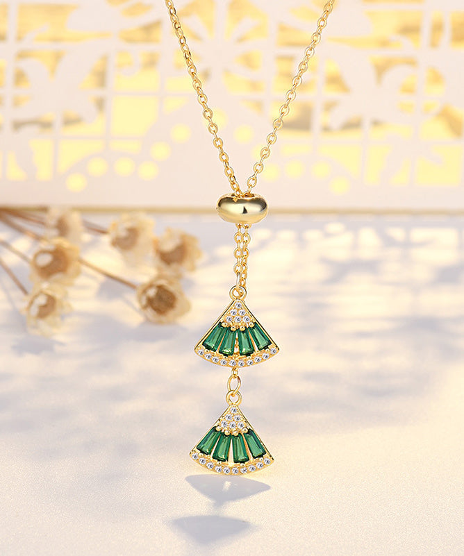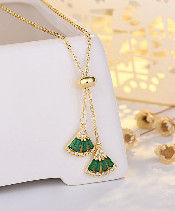 Collar con colgante de abanico de circonitas doradas y cobre verde a la moda