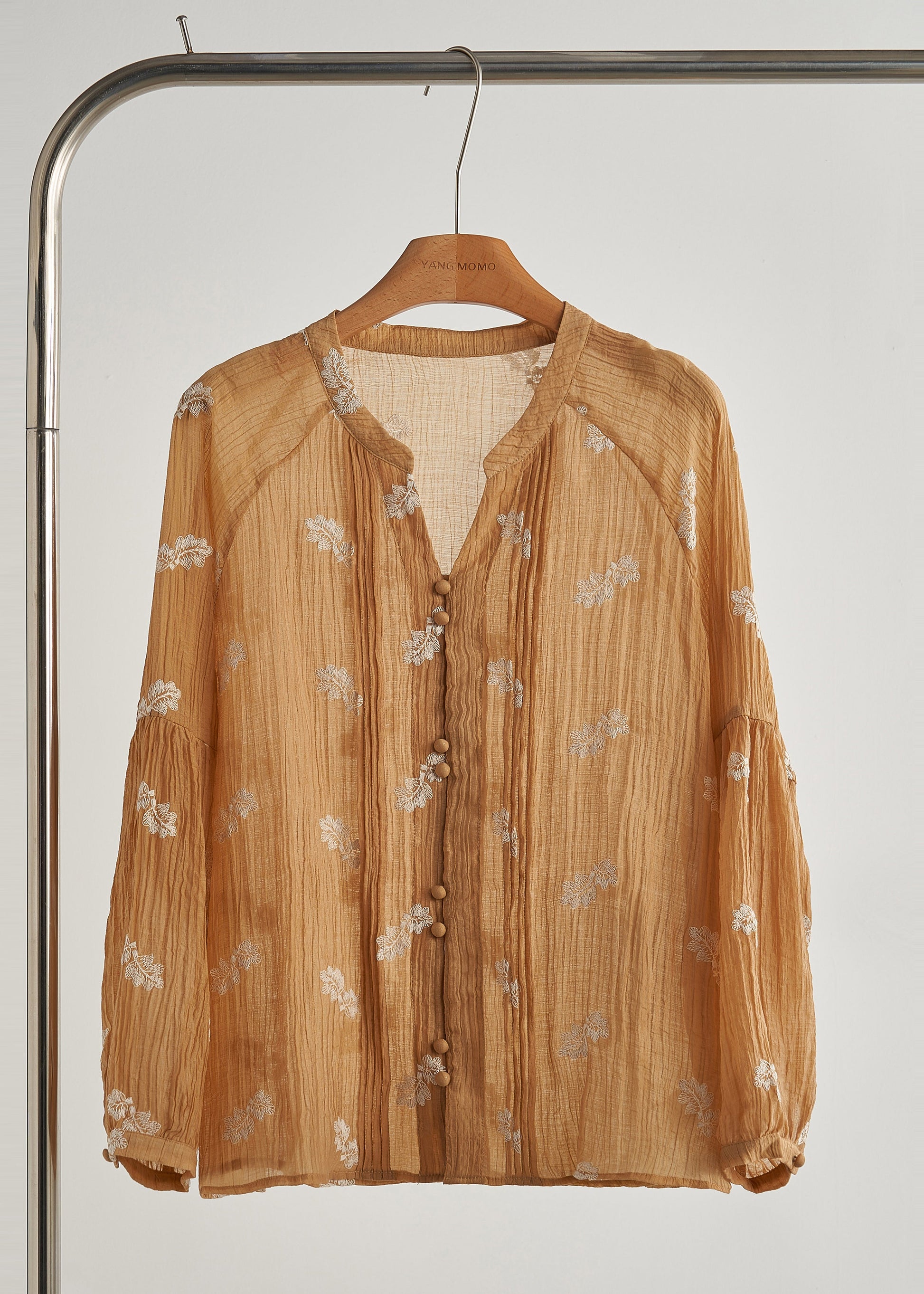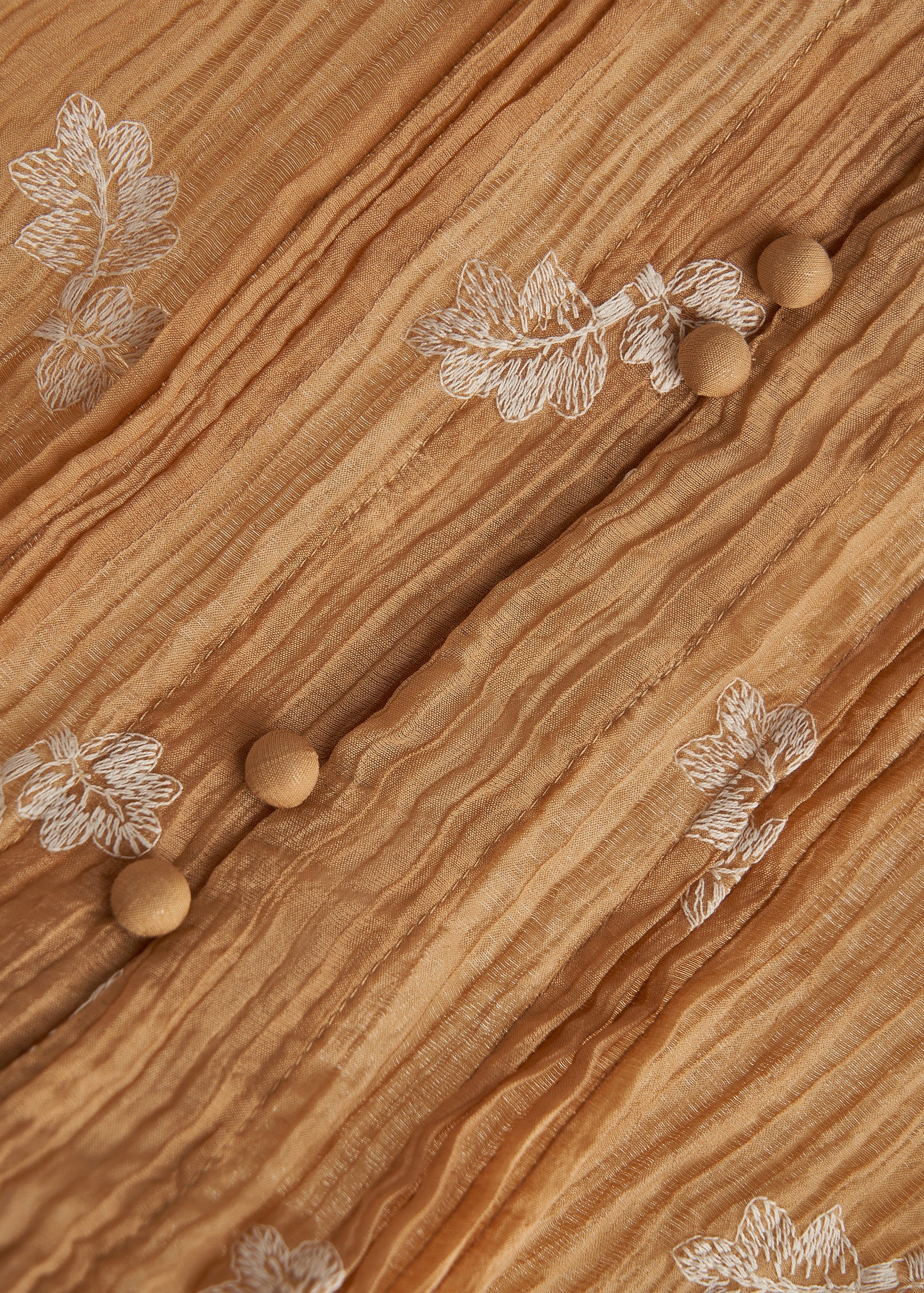 Blusas de algodón arrugado con bordados caqui de moda para primavera