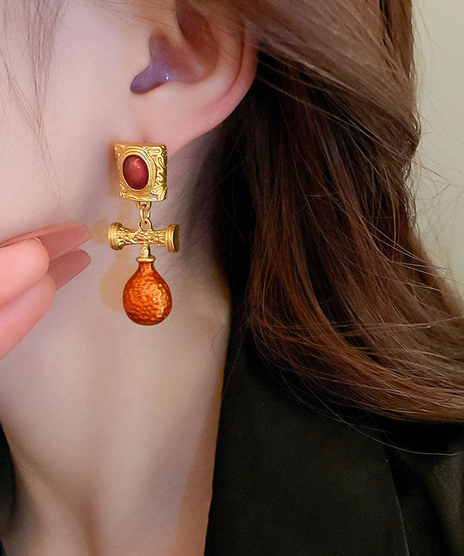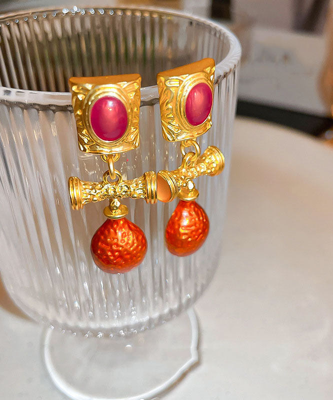 Pendientes colgantes de aleación naranja con incrustaciones de gemas