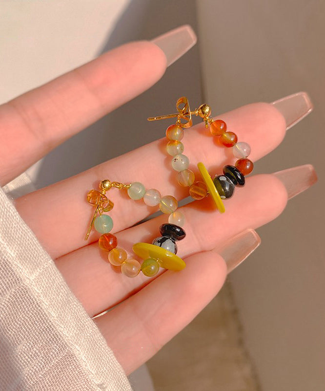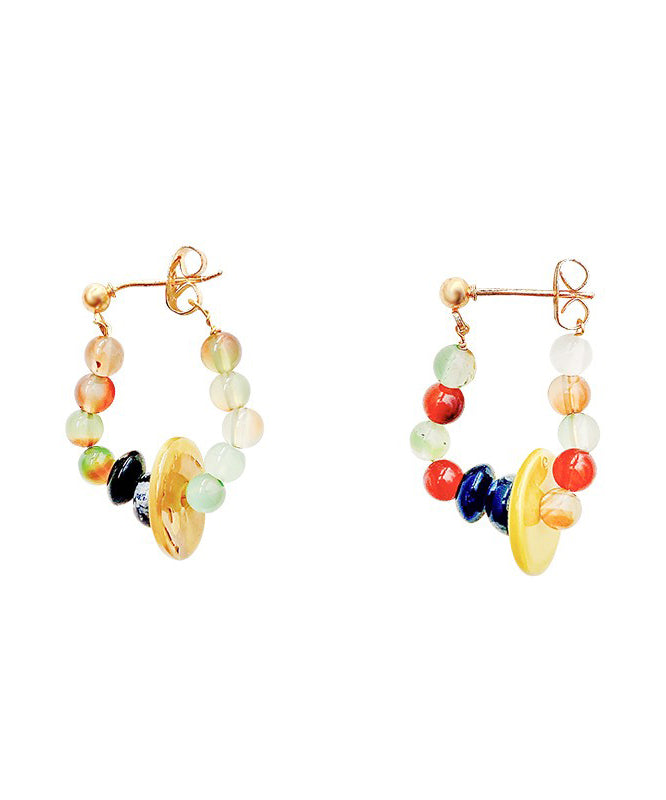 Pendientes de aro con cuentas de aleación de plata esterlina y arcoíris de moda