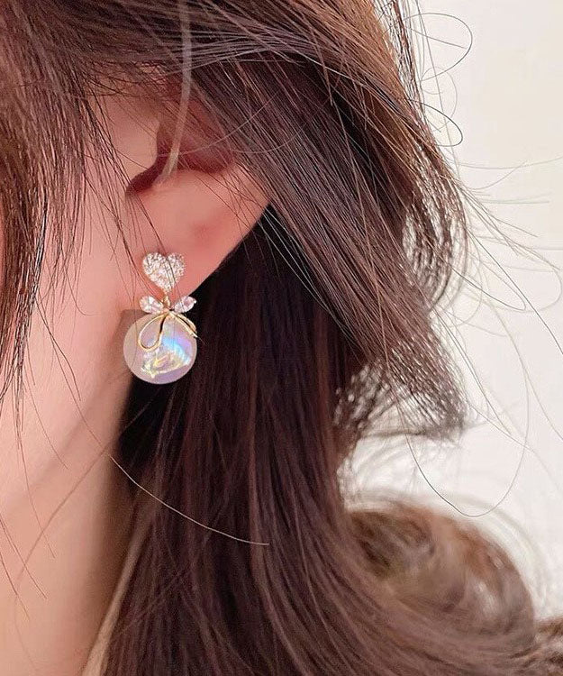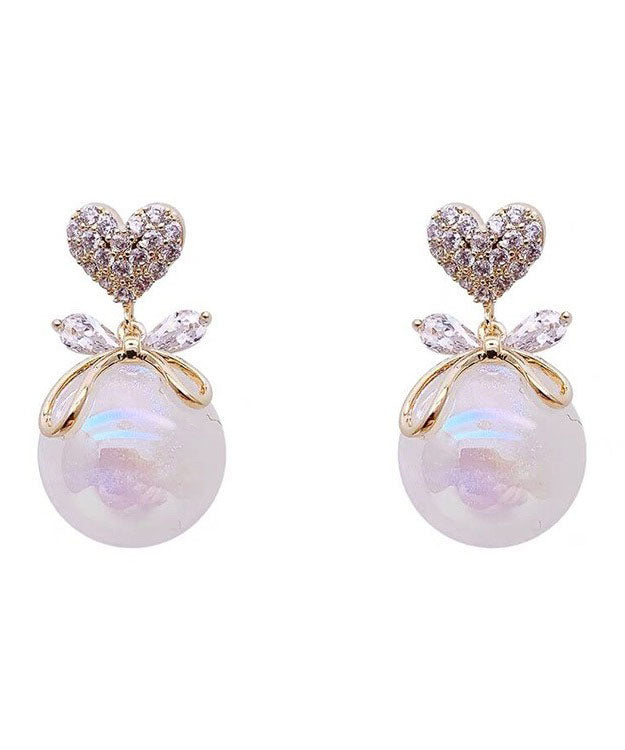 Pendientes colgantes con lazo de circonita y perla de oro de 14 quilates bañados en cobre blanco