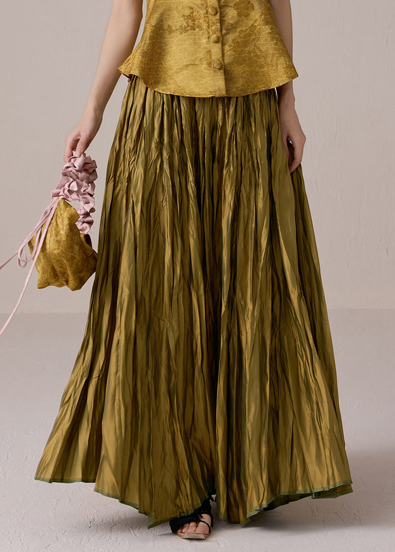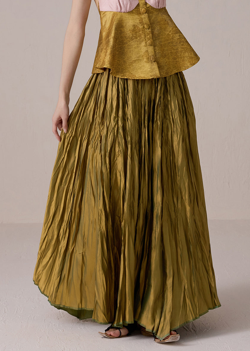 Faldas de verano de algodón extragrande con dobladillo ancho y finas arrugadas en ambos lados, color verde