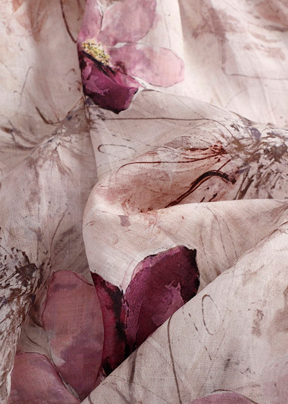 Vestido largo de verano de lino arrugado con estampado de cuello redondo fino