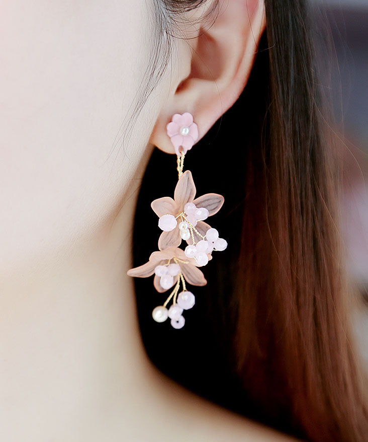 Pendientes colgantes de cristal rojo con incrustaciones finas, hechos a mano, con cuentas y gráficos.