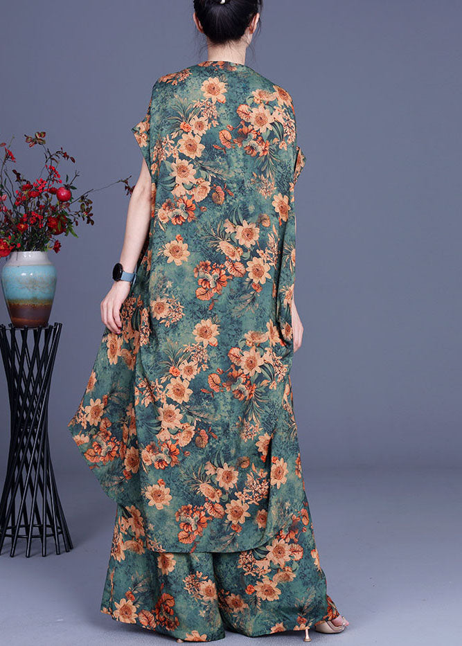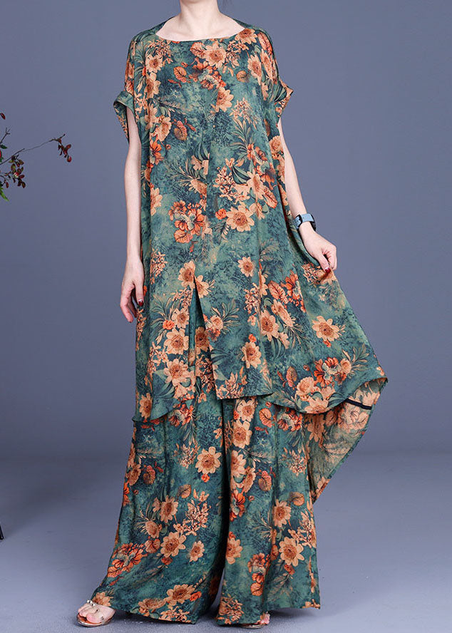 Conjunto de dos piezas de manga corta de otoño con diseño bajo y alto con estampado verde francés