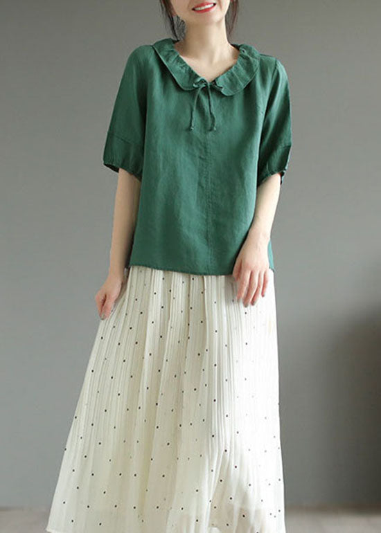Camiseta de algodón con patchwork verde y cuello Peter Pan de manga corta