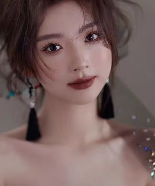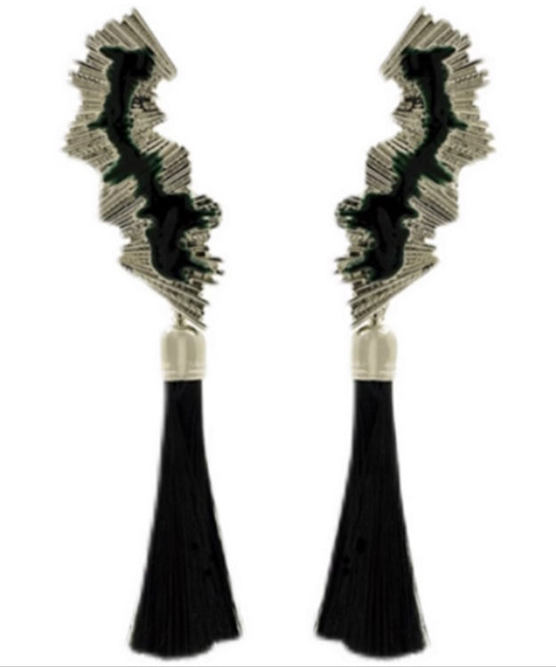 Pendientes colgantes con borlas de plata de ley negra hechos a mano