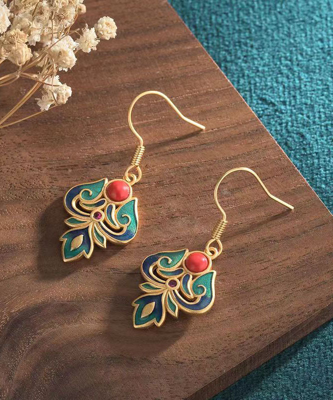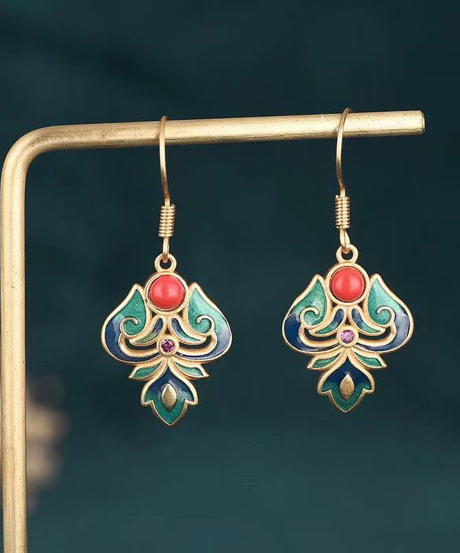 Pendientes colgantes de ágata cristalina esmaltada en plata de ley azul hechos a mano