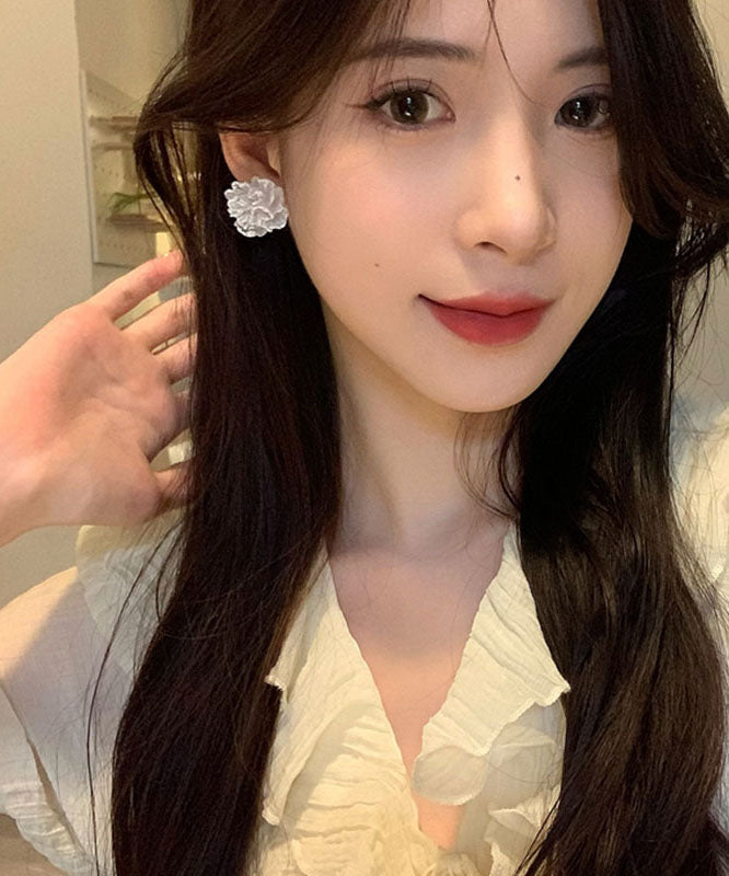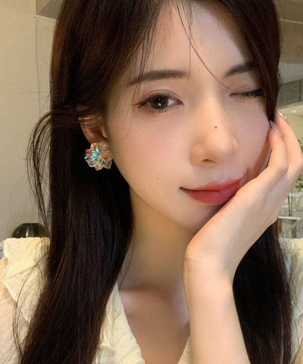 Pendientes florales de resina de plata de ley con diseño de arcoíris hechos a mano