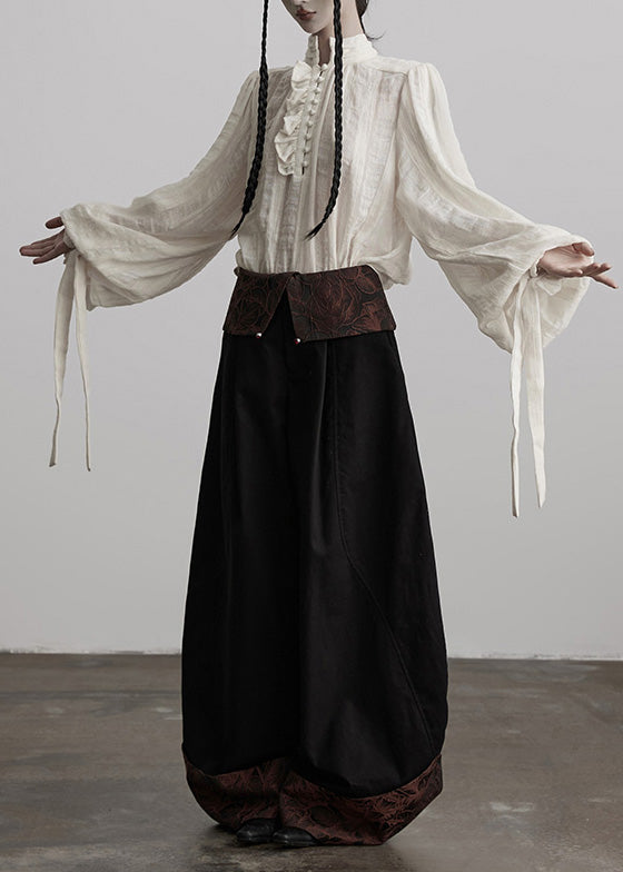 Pantalones anchos italianos de algodón con patchwork jacquard negro para primavera