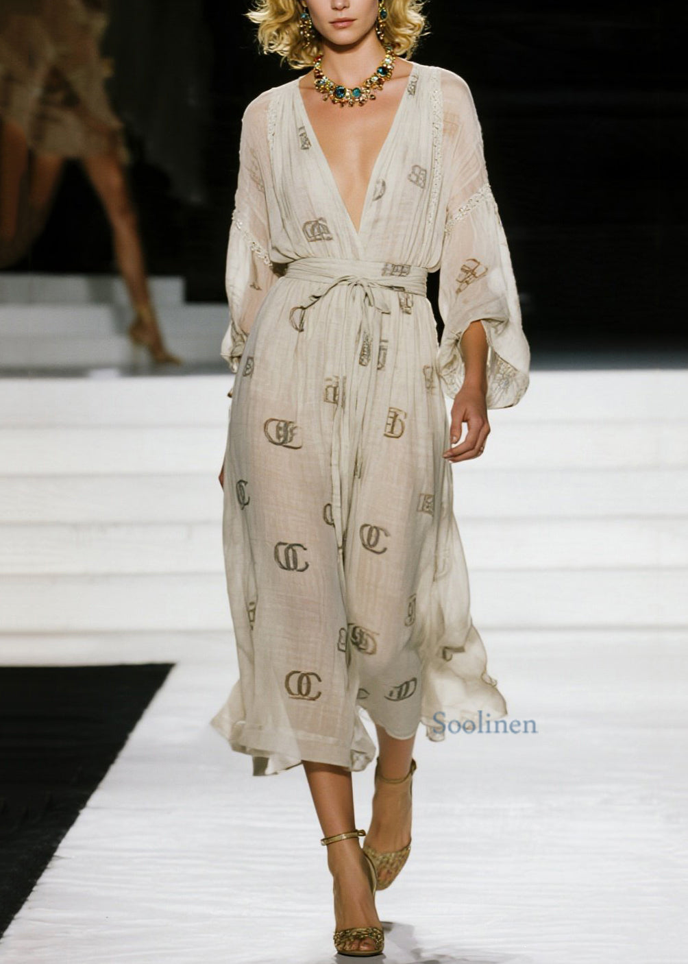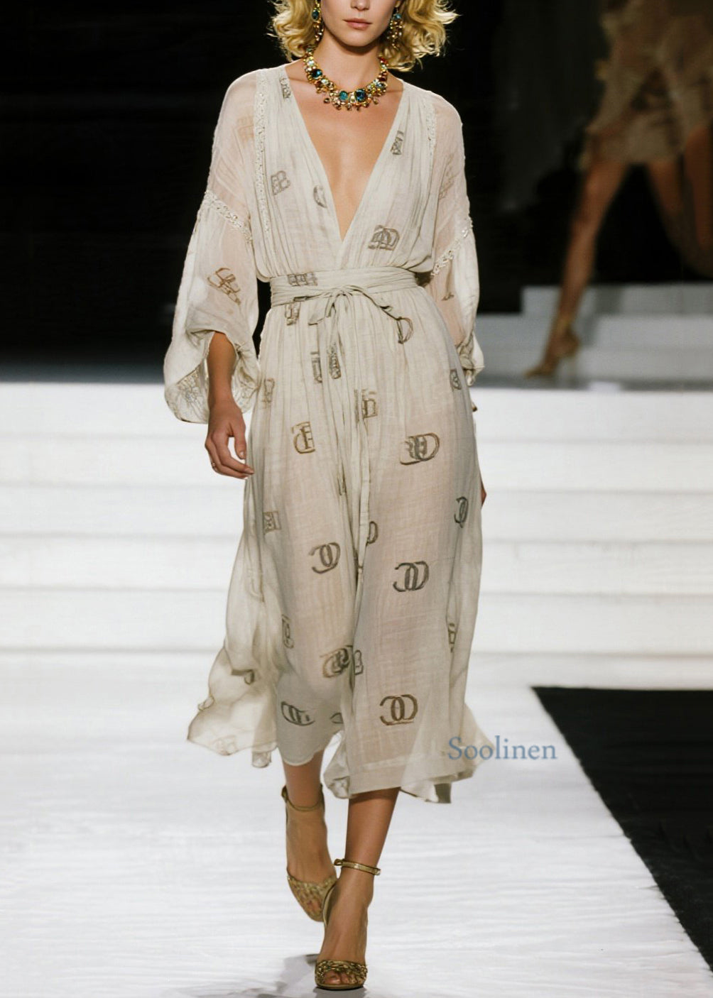 Vestidos de algodón con cuello en V, estampados y cordones italianos para primavera