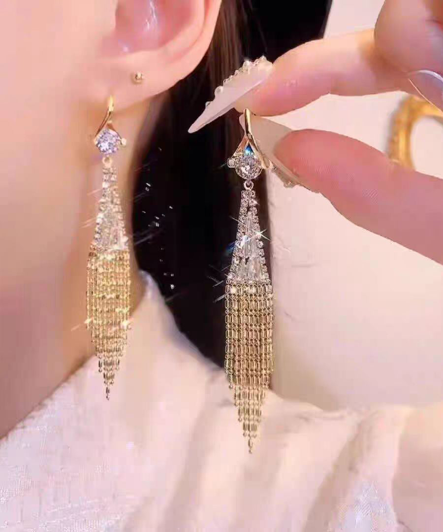 Pendientes colgantes con borlas de circonitas y cobre dorado