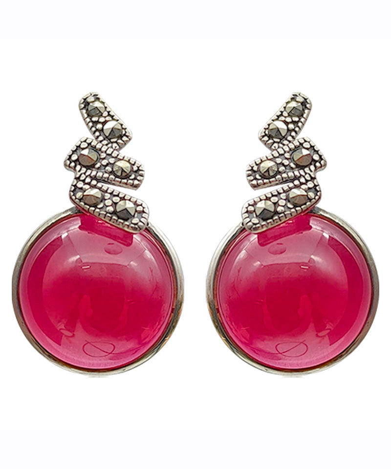 Pendientes sueltos de plata de ley roja con incrustaciones de circonita y corindón rojo